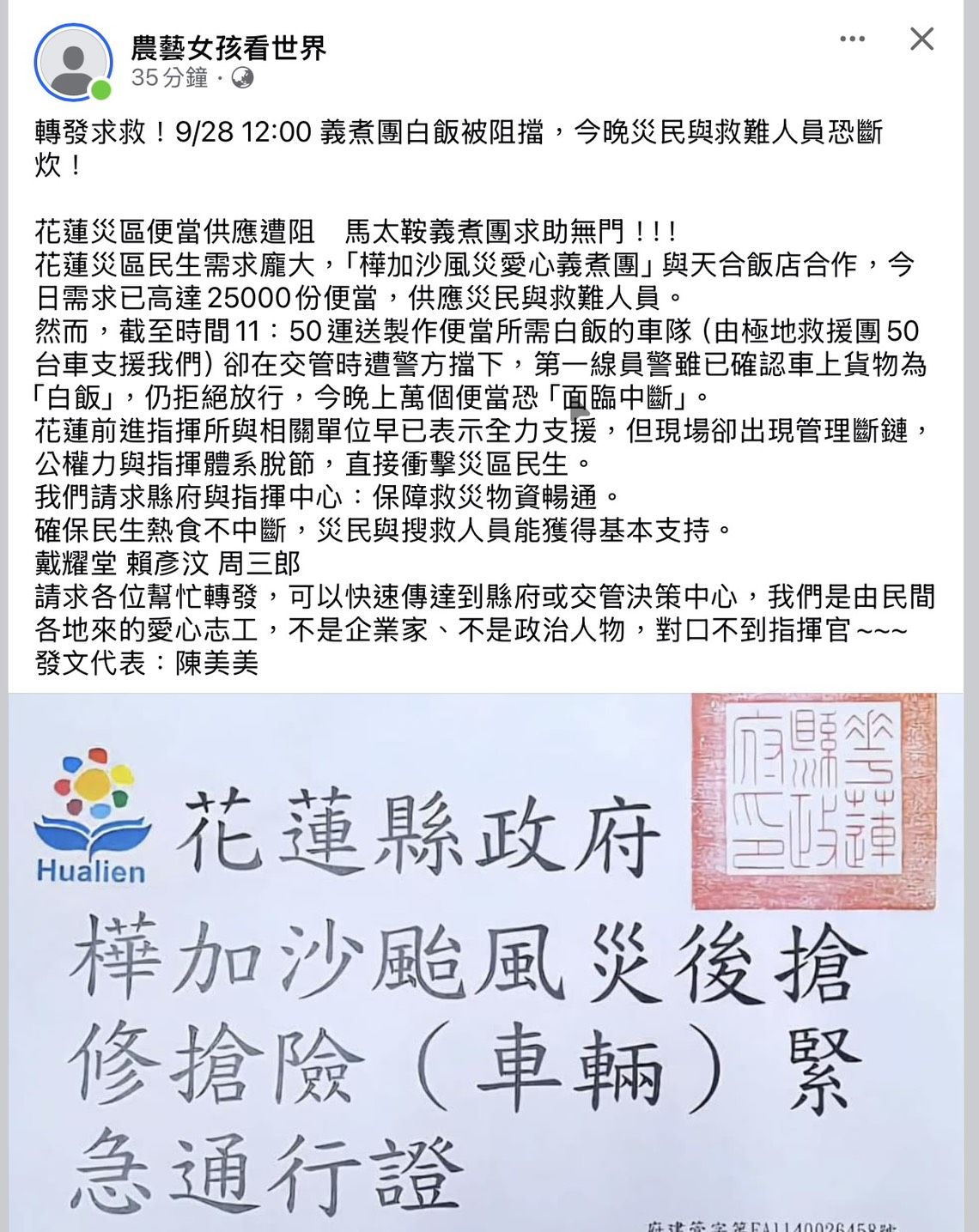 現在要進災區還要花蓮縣政府准才能進去哦