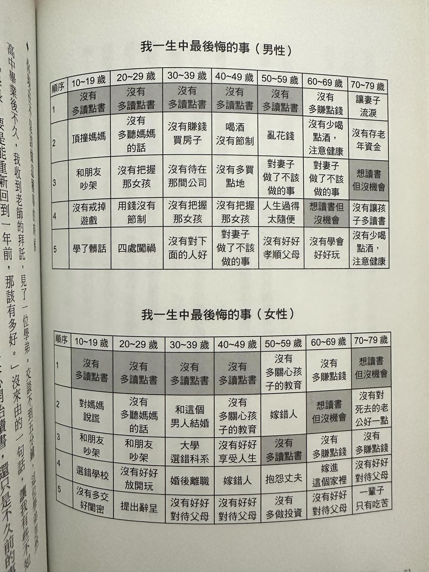 女的一堆格子在後悔嫁錯人 男的卻沒有半格是後悔娶錯人的