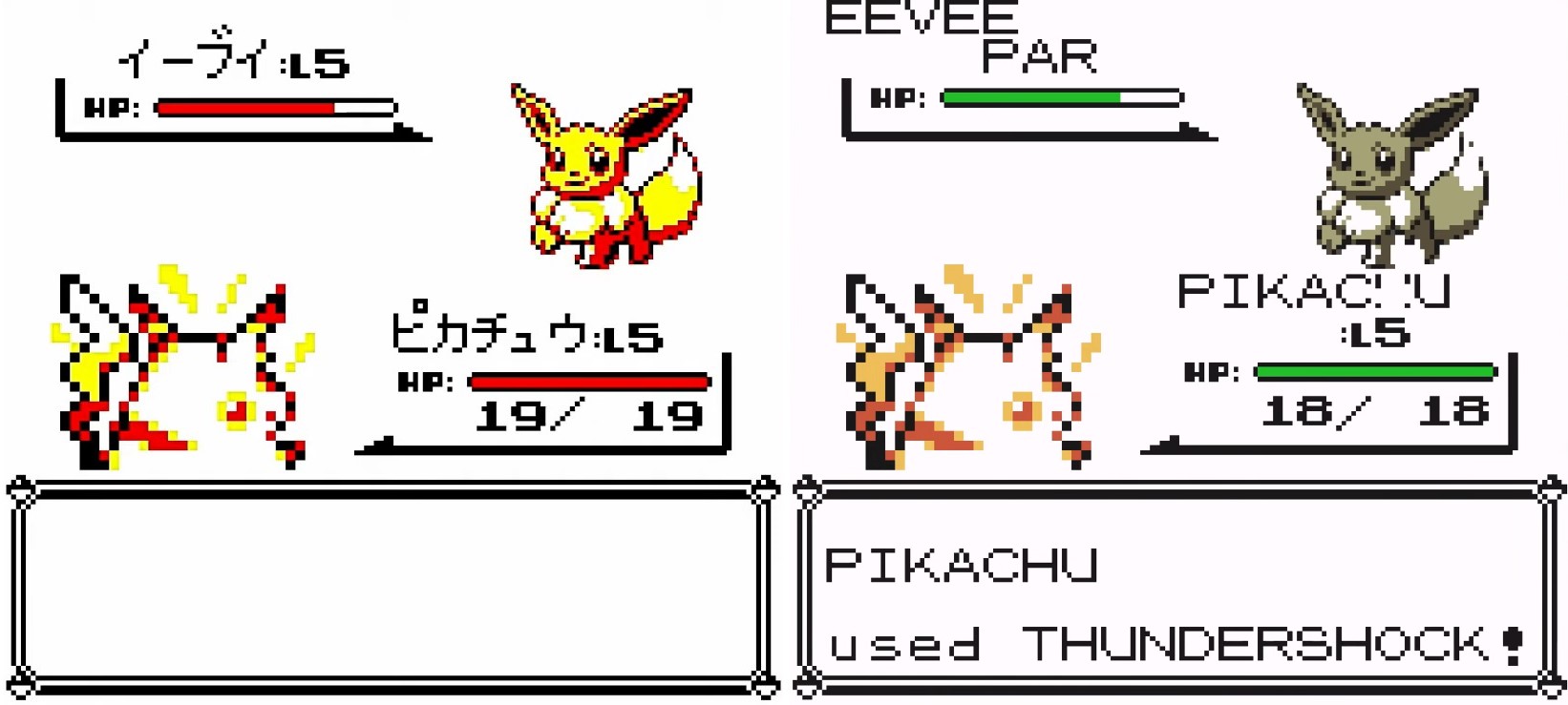 日版的《皮卡丘》與GBC先後發售,因此默認使用了GBC的紅黃色調的調色盤,但是顏色是單色。