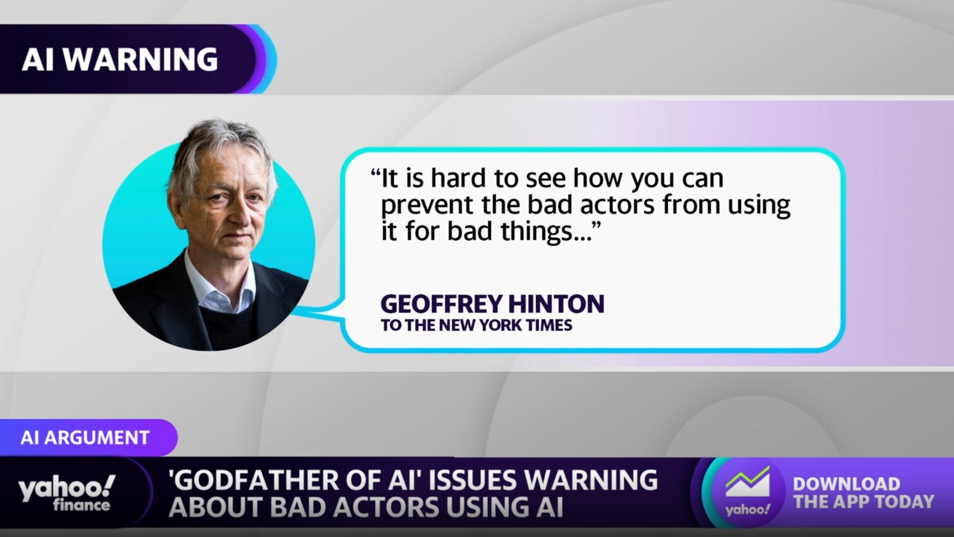 Hinton時常對媒體公開警告AI的濫用、失業以及生存風險問題。獲得諾貝爾獎後,他呼籲緊急研究AI安全問題,找到方法控制比人類更聰明的AI系統。