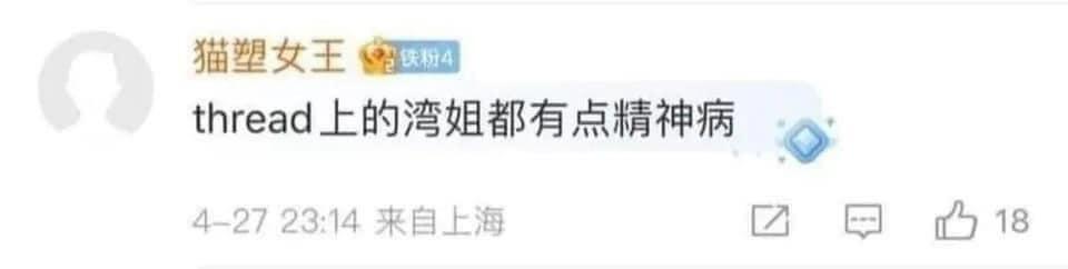 連支那人都受不了threads上的精障台灣人