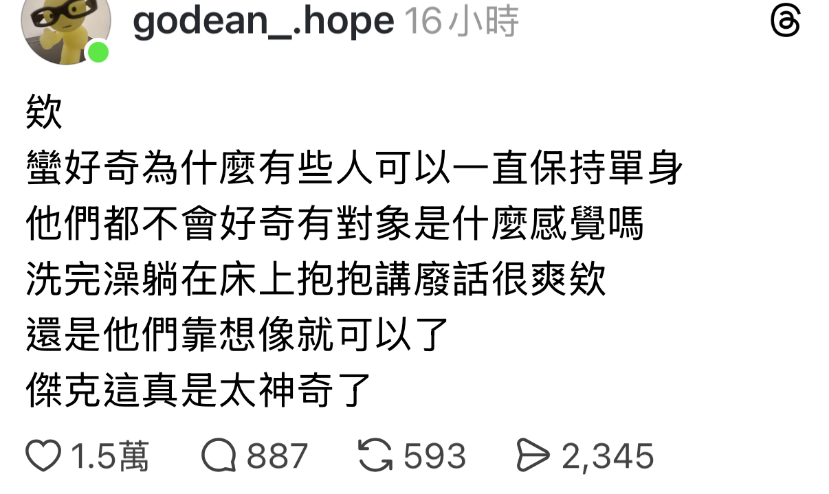蠻好奇為什麼有些人可以一直保持單身