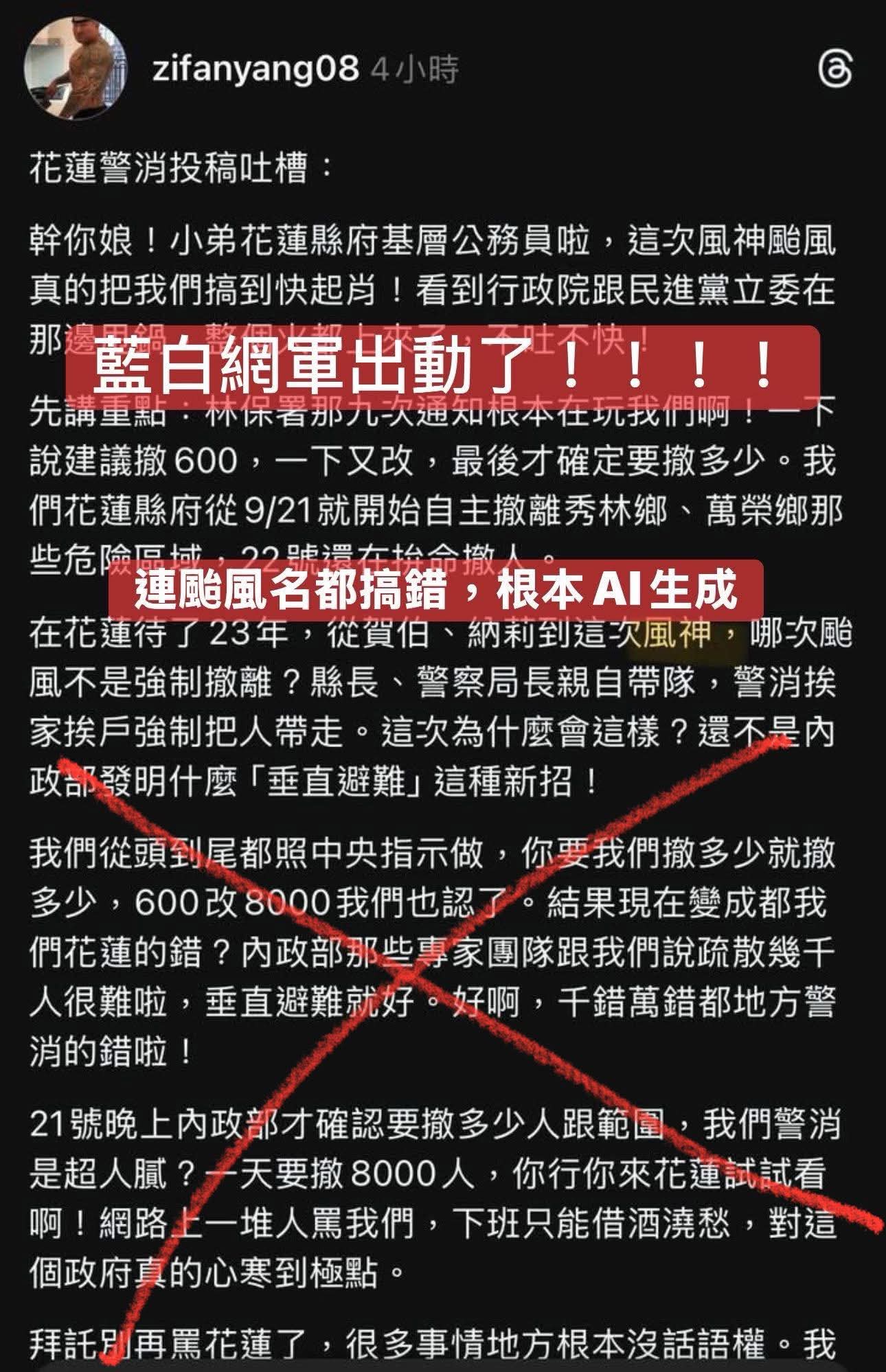 上個月不是吹花蓮很會防災,貼文還沒刪除喔。