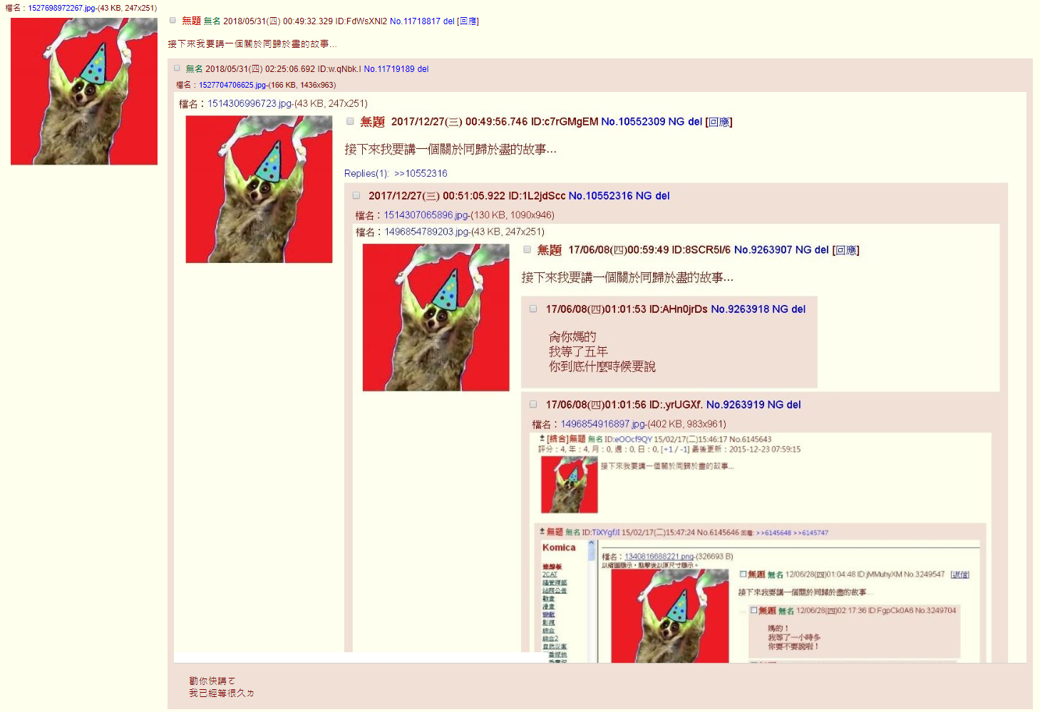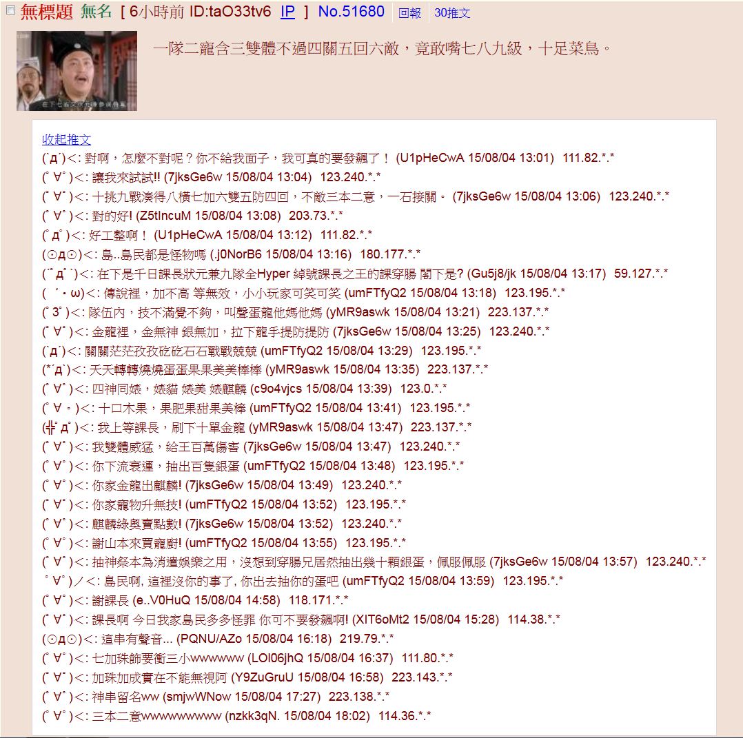 純樸時代:最早的綜合,每個人都天真地認真討論鮑米花時代:人人看到筆戰時爭相擺攤吃鮑米花殺人蛙時代:我來了 你不要逃!!!丁丁時代:我是丁丁 丁丁丁丁丁丁丁 !肛人時代:現在你感覺如何了?感覺如何了!?3886時代:大哥哥都是變態!!鑽頭時代:我要用OO突破天際!照燒時代:照燒和反照燒廚崛起,佔領綜合妹妹文時代:請問我的妹妹怎麼了?屁眼時代:我被吸到妹妹的屁眼裡了 !爽哥時代:www.youtube.com/watch?v=wktWyNgi5NE蘆洲小刀時代:幹,不爽到蘆洲火車站灣家!!武將時代:由蘆洲小刀帶頭,各路英雄好漢崛起!!生日哥時代:今天我生日ㄛ!x100 末代武將的代表人物蓮子時代:蓮子已經成為家常便飯,習慣了、免疫了...獵奇時代:蓮子進階版,不過都被鎖ip了韓狗時代:笑什麼 你也是韓狗人 !!智障神時代:2006年種剛完全治霸 宅男買不起哭哭喔www梓貓時代:潛意識討厭梓貓報警時代:已抱緊處理裝猿時代:大家一起跳頓戰幻舞 謗佛者死神豬時代:台大神豬團隊 是否自導自演的大戰!!南北戰爭時代:山豬和超?的終極之戰!!反韓時代:哈韓賤畜全部都該拿去斬了!!肥宅時代:人人皆肥宅東方廚時代:東方的廚師比較穩重教官時代:艾琳教官的身和心都屬於你 反東方魔女的時代!!!複製文時代:我不直接回答你,我用複製文回答?小光時代:微軟太GJ了 ! 幹 我被自己的圖嚇到! (聖誕限定)投共時代:我也不知道阿 昨天他說要去投共 今天就變成這樣米酒哥時代:跨三小 要不要買小米酒 魔改開始sssss時代:ssssss新教官時代:教官大戰ssss廚 大洗版時代混亂時代:教官和ssss戰的天昏地暗 傷亡慘中 綜合百廢待舉 無聊混亂的時代QB時代:要跟我簽訂契約成為馬猴燒酒??愛國時代:國旗和支那人的決戰 支那沒自由民主哭哭喔W楊培安時代:我相信自由自在 我詳細希望 我相信伸手就能有載點綜合戰妹版時代:漁夫 教官 雷米 家豪等人大舉進攻妹版 妹版分裂的時代 從妹版戰到管管 各路名將掘起 蜂火四起 開始了頂上決戰!!!!油麻哥時代:"今天我自演!""不准給我戴眼鏡!""孩子,這不是你能決定的。"綜合之眼! 這便是神的姿態 新梓?時代:醬油用完了 所以我去添購屈原時代:拿啦拿啦拿啦拿啦拿啦拿啦拿啦拿啦原PO時代:原PO果好棒!⑨女神時代:這個時代的一股清流 綜合島民跟克林的洗票機器人大戰三百回合後成功打敗其惡勢力管妹時代:FF遇過 蠻可愛的 小小一隻 短雙馬尾 目測有D王老師時代:5月11日10點42分37秒是芥末日賓拉登時代:美國總統 賓拉登小賈時代:小賈很不舒服 你不可以罵他香菜時代:點菜的時候已經跟老闆說不要放香菜了綜二時代:綜合才不會承認綜合二能美時代:哈哈( ゚∀゚)!現在是10點整( ゚∀゚)!大豬什麼小豬蛤( ゚∀゚)!粒子時代:我們想表達的是給水母田一個機會 為之後的大PUMA時代打開先端PUMA時代:puma就在我身邊!!盲點時代:華生 別管什麼沖繩奴隸島了! 快來突破盲點呀!!台灣漫畫時代:你有多久沒看台灣漫畫了管家時代:第一次覺得TMA其實是個非常優秀的製作組劉子千時代:我的字典裡沒有放棄 因為已鎖定你 我從不寫空白的日記 日記裡全是你 WTF4正式成立老朽部時代:小蘿莉真是太棒了!!艾克斯時代:第...十次......了!企鵝時代:( ゚д゚)<生存戦略ぅーーー!電台時代:各路英雄好手齊聚電台攻破數個目標 皆以在綜合儲備已久的廚力迅速掃蕩電台