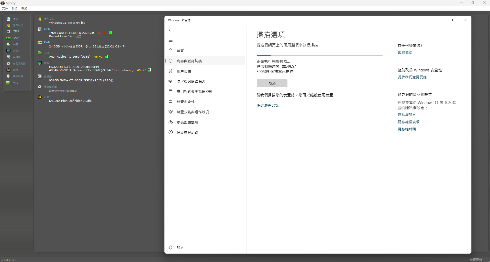 win11掃毒cpu